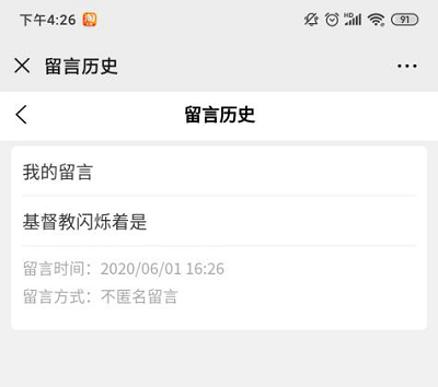 點(diǎn)擊“留言歷史”可查看自己的歷史留言