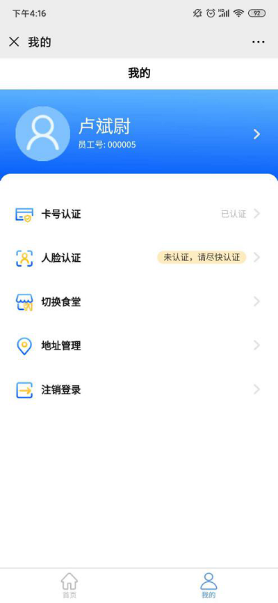②若顯示“未認(rèn)證,請(qǐng)盡快認(rèn)證”,則點(diǎn)擊可輸入姓名、工號(hào)、卡號(hào)進(jìn)行綁定認(rèn)證