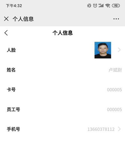 ①可查看人臉、姓名、卡號(hào)、員工號(hào)、手機(jī)號(hào)等信息